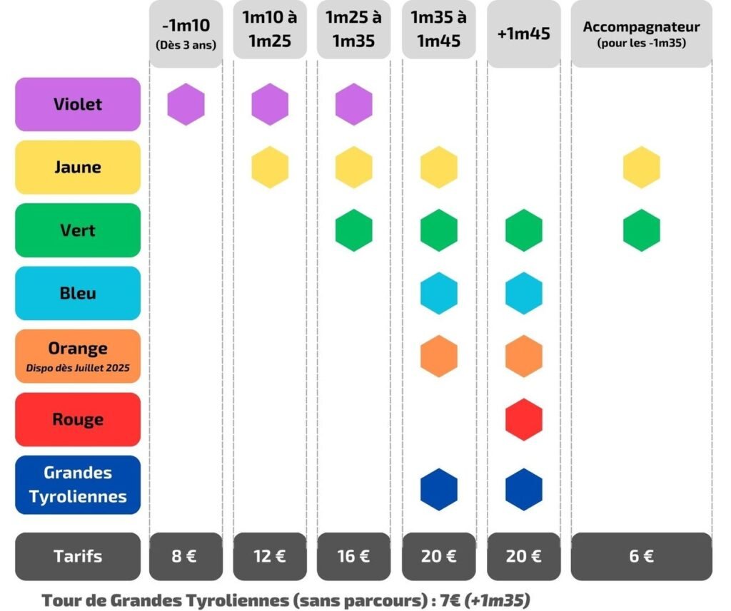 Tyroliennes Géantes (+ de 1m35) :
